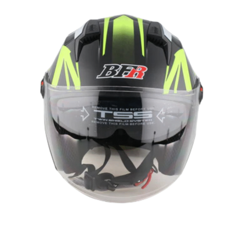 3/4 Lime Green Open Face Motorcycle Helmet with Dual Visor Shield