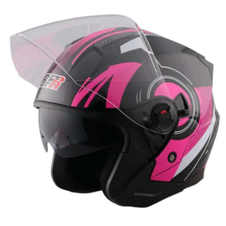 3/4 Pink Open Face Motorcycle Helmet with Dual Visor Shield