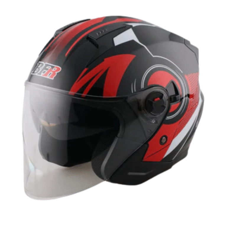 3/4 Red Open Face Motorcycle Helmet with Dual Visor Shield