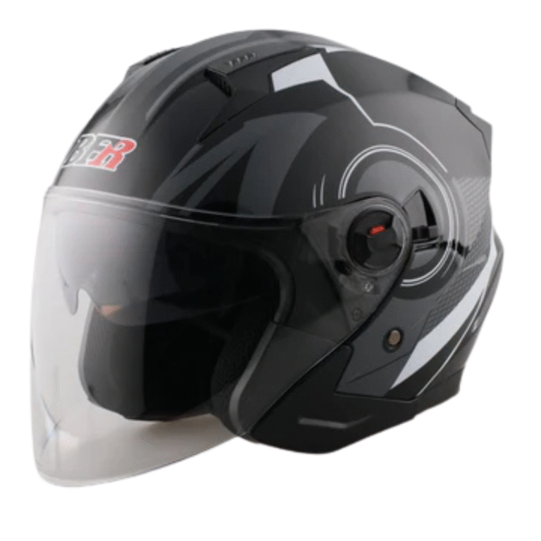 Open Face Crash Jet Helmet DOT/ECE Approved-Shiny Grey Black
