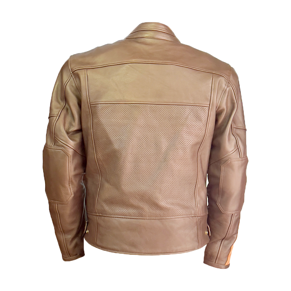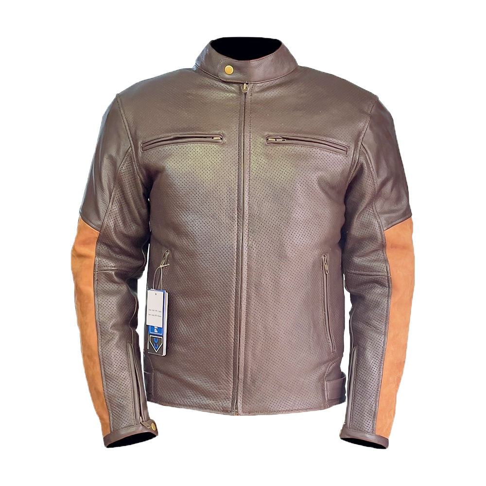 Delta Motorcycle Leather Jacket is all time sports/street and casual riding style. Features: 1.1-1.2mm soft NAPPA high TENDENCY Cow hide leather natural grain constructed with combination of mostly perforated and non-perforated top Grain. CE approved removable Elbow/Shoulder and back armor. Perforated Front chest/sleeves and back panels for smooth Air-flow. Full sleeve zip out liner. Short connection zippers to attach pant. External foam padded on Elbow for additional protection. Bottom waist sides with adjustable button flaps.