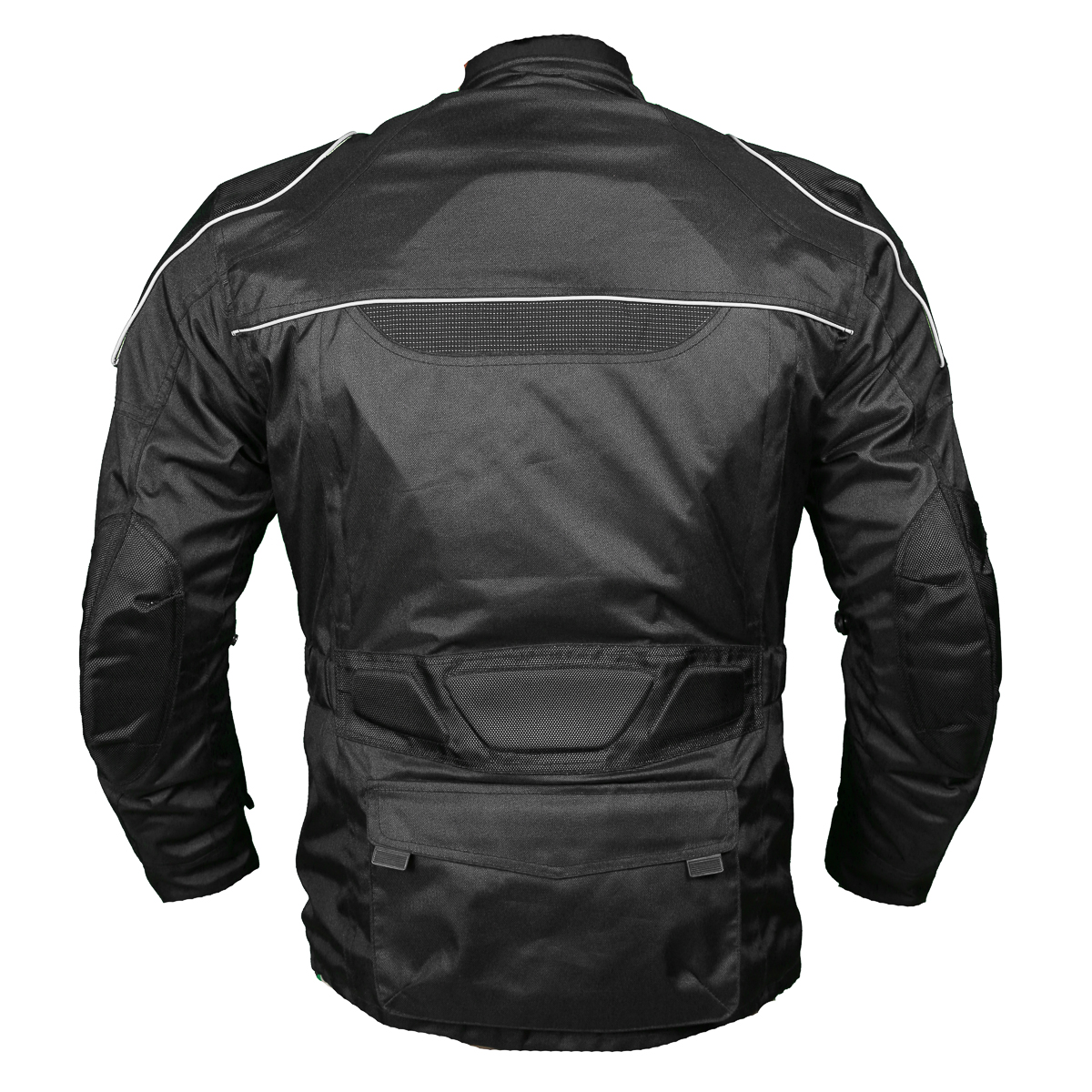 Sonora 3 quarter Motorcycle Jacket is perfect for all season, Features: 600D outer shell Polyester. Fully water proof with Breathable Membrane. Full Sleeve Thermal zip out Liner. CE approved Elbow, Shoulder and Back armor, 6 Air vents in take, 2 front chest, 2 on the sleeves and 2 rear for smooth Air slow. Reflective pipping for better visibility, 9 pockets for storage. short connection zipper to attach pants.