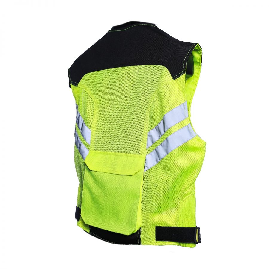Solar is Motorcycle safetey vest known as highly visible day or night time riding Features:.600D Polyester Mesh. 2 front chest pockets, one for ID and another for your cell. Reflective pipping front and back for night time visibility Back cargo pocket. Gun pocket inside 7 pockets in total to carry stuff. Adjustable flap on both side along with Stretch panel on both sides for extra comfort.